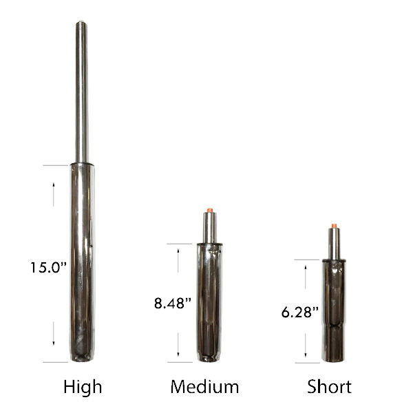 - - Hydraulic Center Piston for Mani & Pedi Stools- Chrome Finish - 4 Different sizes: Small, Medium & High - Price for each - Weights: 3 lbs for Small, Medium & & 5.10 lbs for High Note: All dimensions and weights are only approximate.