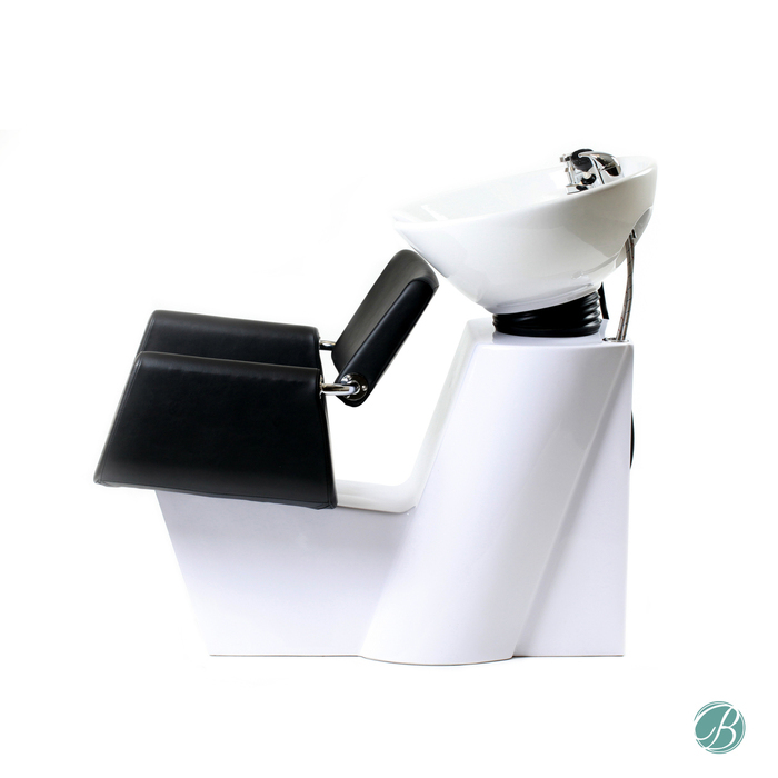 Take pleasure in obtaining this modern sleek futuristic designed backwash unit. It will work perfectly into fitting in with an upscale salon décor. Features include a wonderful luxurious padded cushion seat, a silicone lined neck rest, and a beautifully crafted ceramic bowl. The Aron Backwash Unit comes available in white or black. Complete the look with the Aron Styling Chair.